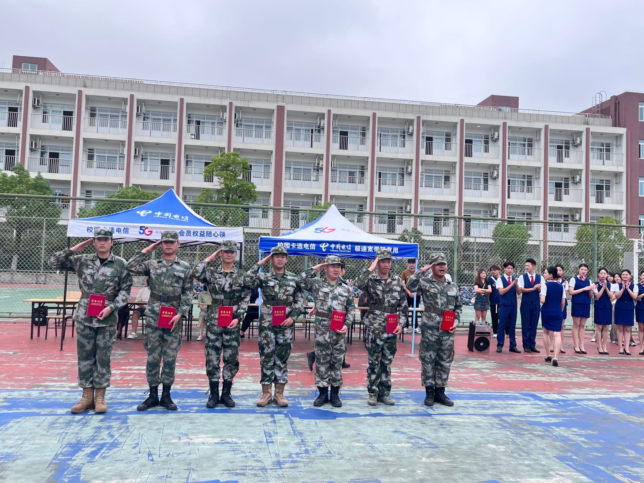9月27日上午,应用外语学院2023级新生军训会操暨表彰大会在文津校区网球场举行,学院党总支书记朱力、副院长金海、学院党总支副书记张玲和全体辅导员参加了此次活动。