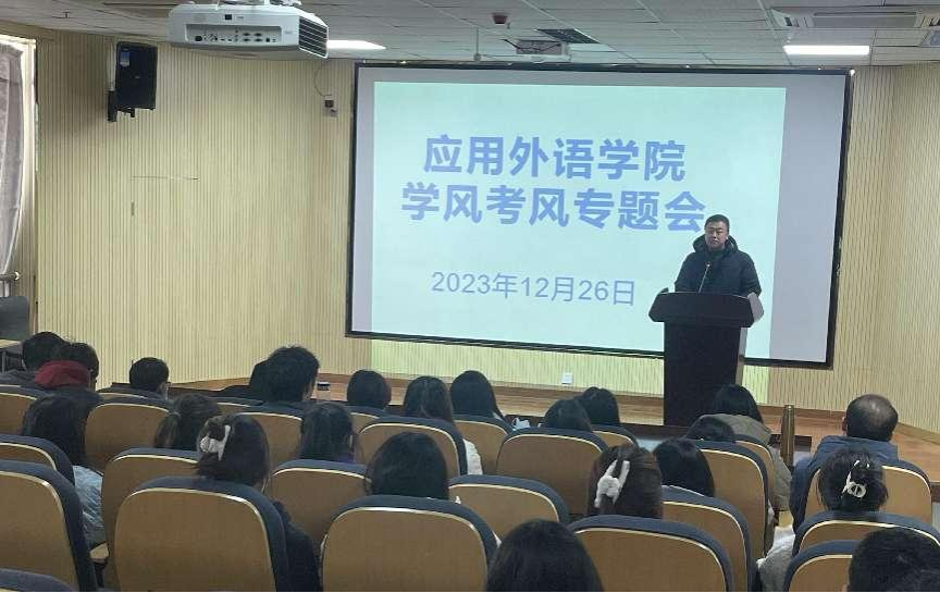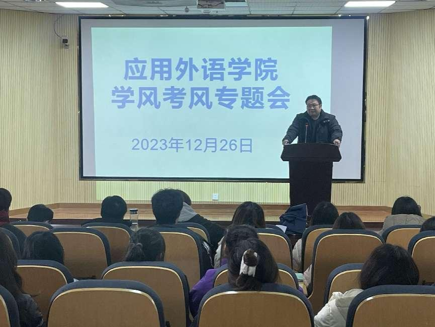 期末考试来临之际,为加强学风建设,增强学生诚信意识,严肃考风考纪,营造公平、公正的考试环境。近日,应用外语学院在明德楼715召开了学风考风专题会。应用外语学院党总支书记朱力做专题讲话,应用外语学院全体辅导员、各班学委参加会议。会议由应用外语学院副院长金海主持。