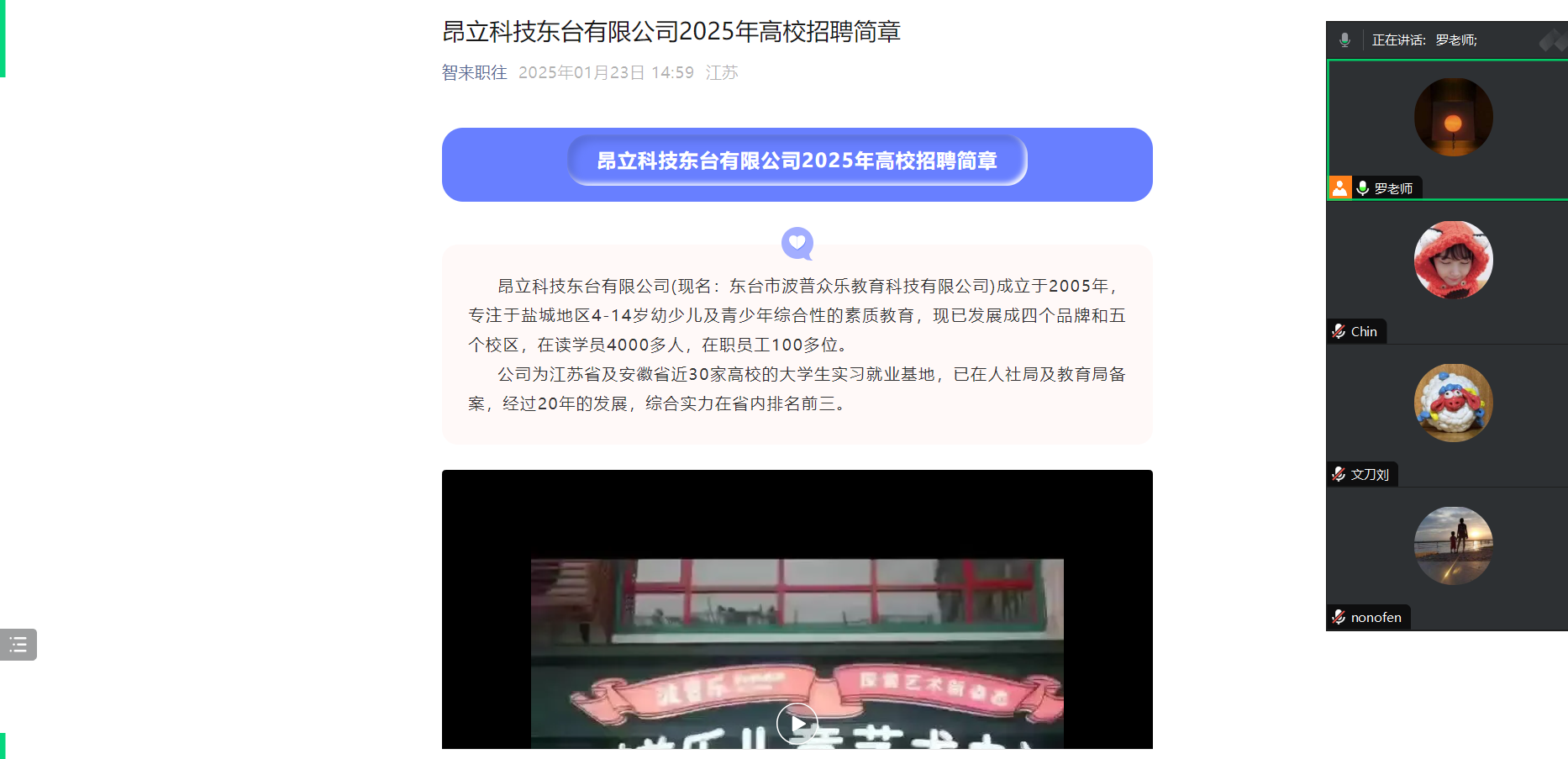 5月22日,应用外语学院于腾讯会议线上平台成功举办了2025年春季线上校园招聘会。此次招聘会借助互联网平台,打破了时间与空间的限制,为学院学子与用人单位搭建了高效便捷的沟通桥梁。